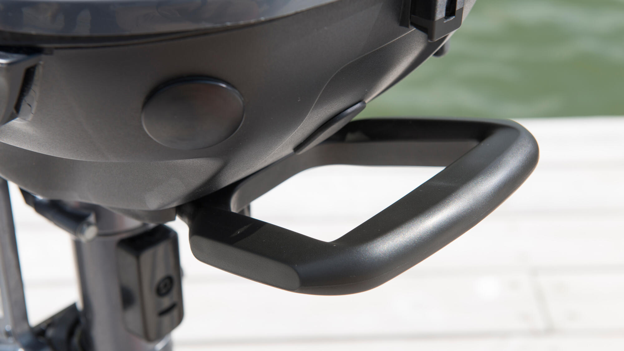 The first time you take the 2.5hp out on the water, you’ll quickly appreciate how agile it is. The full 360º steering offers exceptional maneuverability and means full reverse thrust is always available without having to shift gears. In addition, the new, larger rear carrying handle is very convenient for steering in reverse.